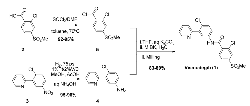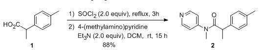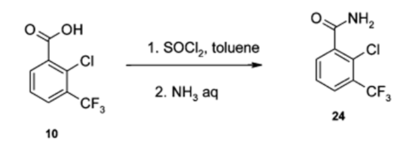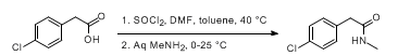 • Synthesis of amides from carboxylic acids via 2 steps (acid chloride followed by amine) is one of common methods adopted for manufacturing