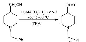 To a solution of oxalyl chloride (2 eq.) in CH2Cl2 (10 Vol) at –78o C, DMSO (4 eq.) is added dropwise and the mixture iss stirred for one hour. Then, a solution of alcohol (1 eq.) in CH2Cl2 (5 Vol) is added at –78o C and stirred for another two hours. The reaction is monitored by TLC.