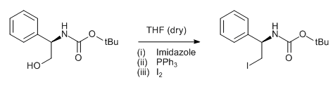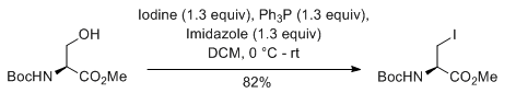 Alcohol (1 eq) and triphenyl phosphine (2 eq.) are taken in DCM (10 Vol) and  cooled to 0 oC. Iodine (2 eq) and Imidazole (3 eq.) in dichloromethane (10 Vol) is added dropwise at 0 oC and the mixture stirred at room temperature. The reaction is monitored by TLC. The reaction mixture is filtered to remove the by-product triphenylphosphine oxide. The filtrate (i.e. organic layer) is successively washed with saturated solution of sodium thiosulphate (10 Vol), water (10 Vol x 2) and brine solution (15 ml), dried over sodium sulphate, filtered and concentrated under reduced pressure. The crude product is purified by column chromatography.