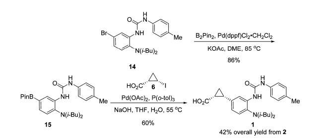 - Development of a Scalable Synthesis of BMS-978587 Featuring a Stereospecific Suzuki Coupling of a Cyclopropane Carboxylic Acid (OPRD, 2018) – BPin syn (1.25 Kg batch) and Suzuki coupling (400 g) are reported