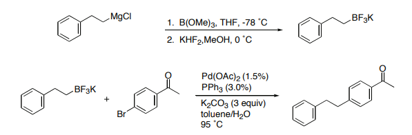 - 1-(4-ACETYLPHENYL)-2-PHENYLETHANE from POTASSIUM 2-PHENETHYLTRIFLUOROBORATE and 4-BROMOACETOPHENONE (OrgSyn) — Open access